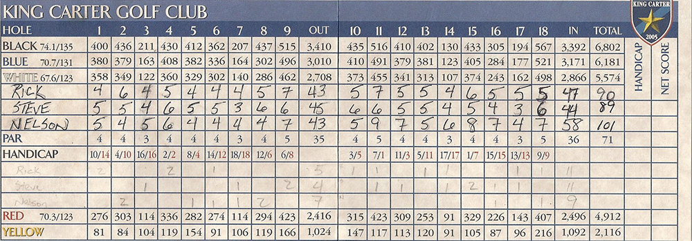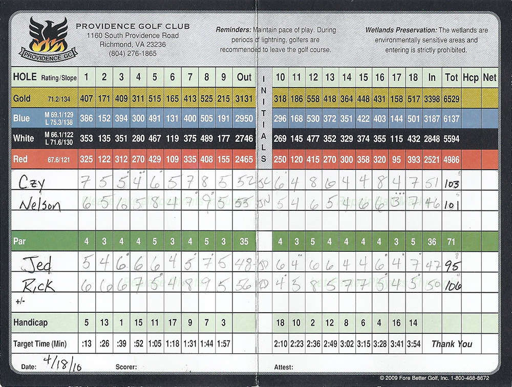 MoreJed shoots nothing over a double bogey to take the 6 shot victory. The consistant play provided a large opening 9 lead that continued through 18 holes, and another victory for Jed.